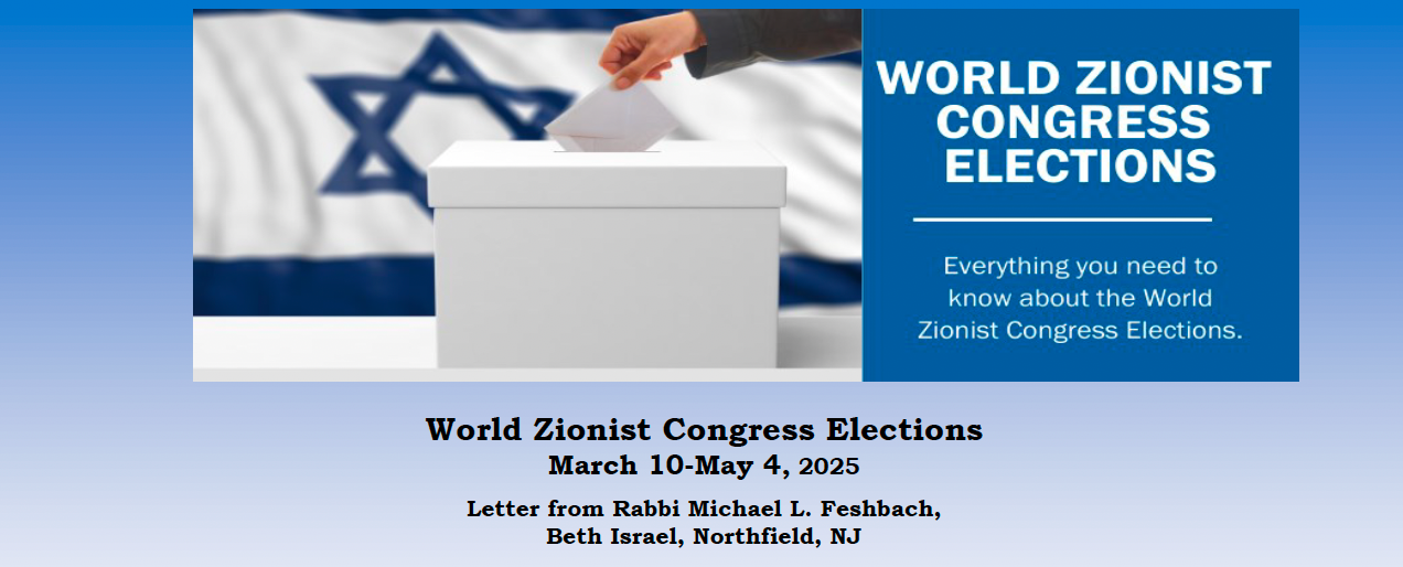 Please click on the image below, to find information about upcoming elections for the World Zionist Congress. The material will describe what this is, why it is important, our our Reform movement is responding, and how you can register and vote.